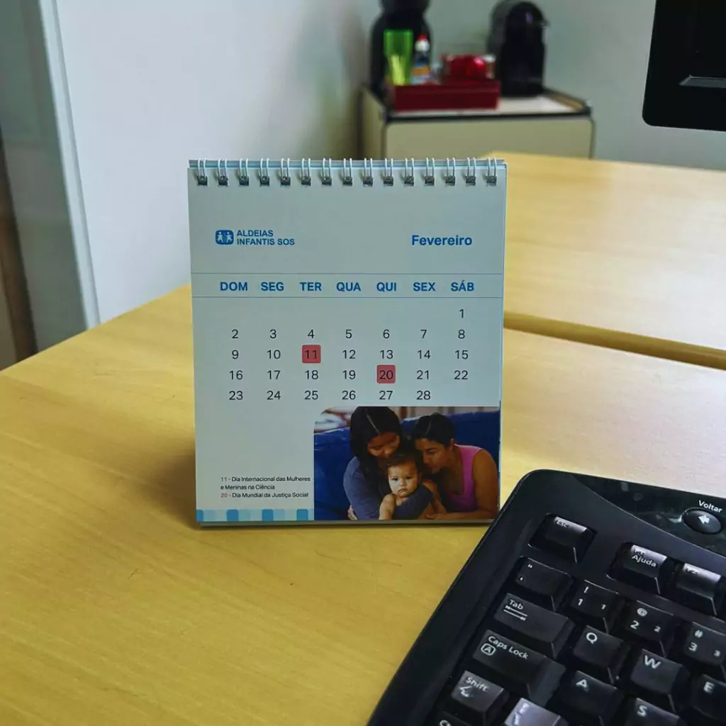Doe e leve um Calendário de Mesa 2025 da Aldeias Infantis SOS